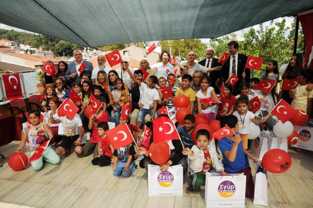 Vakfımız tarafından tespit edilen ihtiyaç sahibi Eyüplü çocuklarımızı, sponsorlarımızdan gönderilen kıyafetlerle giydirdik. Çocuklarımızın bedenlerine uygun kıyafetler tek tek üzerlerinde denenerek özenle seçilmiş ve Eyüp Kaymakamımız Abdullah DÖLEK, Emel BİLENOĞLU, sponsor firma yetkililerimiz Gözde COŞKUN ve Uğur ÇİVRİL’in ve EDV yönetimimizin katılımı ile vakıf merkezimizde gerçekleştirilen 30 Ağustos Zafer bayramı kutlamaları ile çocuklarımıza coşkulu bir şekilde iletilmiştir. Tüm sponsorlarımıza bu anlamlı katkılarından dolayı teşekkürlerimizi sunarız.